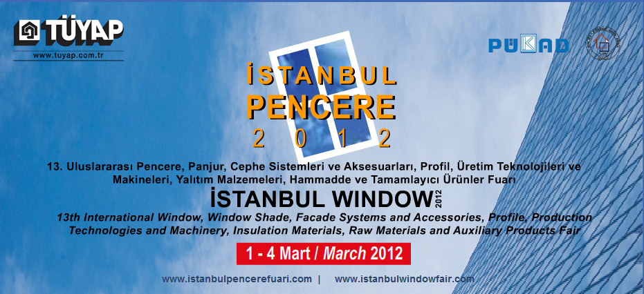 11-14 Mart 2015 tarihleri arasında Tüyap Fuar Merkezi’nde gerçekleşecek olan ”ISTANBUL WINDOW 2015” Kapı-Pencere fuarındaki 3. Salon 402-B no’lu standımızda sizleri ağırlamaktan mutluluk duyar, çalışmalarınızda başarılar dileriz.